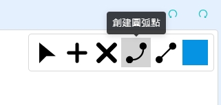 點擊創建圓弧點,在線條上點擊,之後拖曳圓弧點就可以建立曲線。