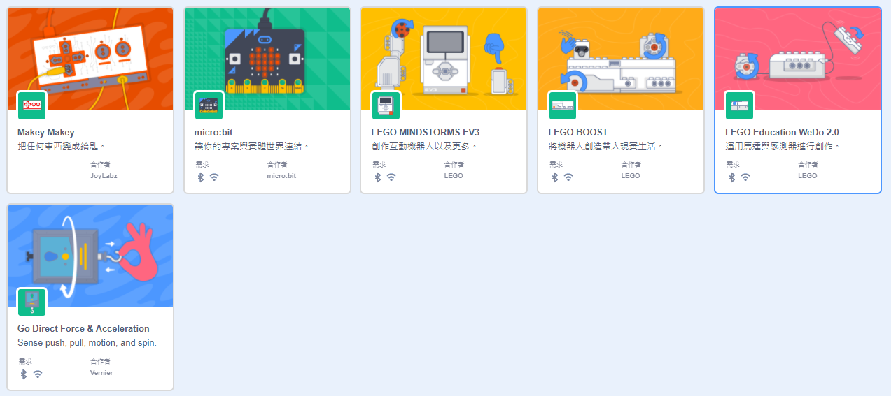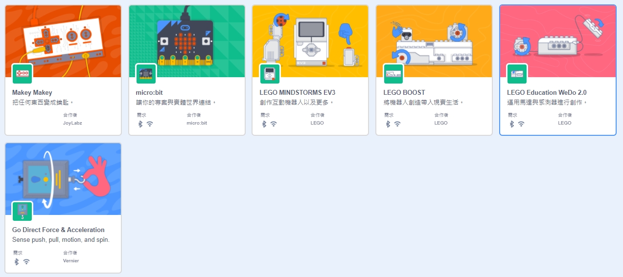 Scratch所支援的插件比較少,只支援Lego Mindstorm、Lego Boost、Makey Makey與Microbit。當中Lego的套件動輒超過數千港元,一般學校實在難以負擔。