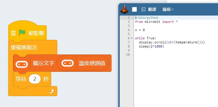 然後我們試試切換至代碼模式並將以上積木翻譯成代碼。