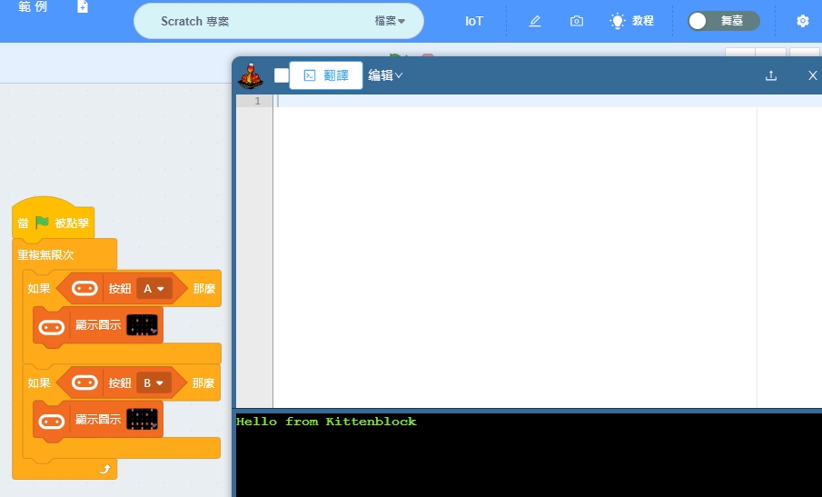 Kittenblock也支援像Makecode那樣將程序上載到Microbit,程序保留在Microbit上就可以離線運行,不需要永遠連著電腦使用。