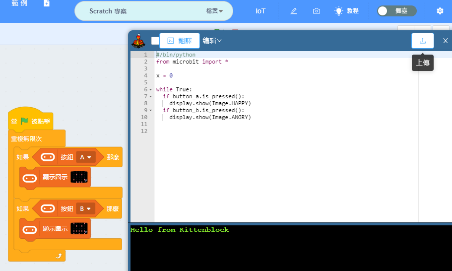 請將Microbit以USB線連接到Kittenblock。