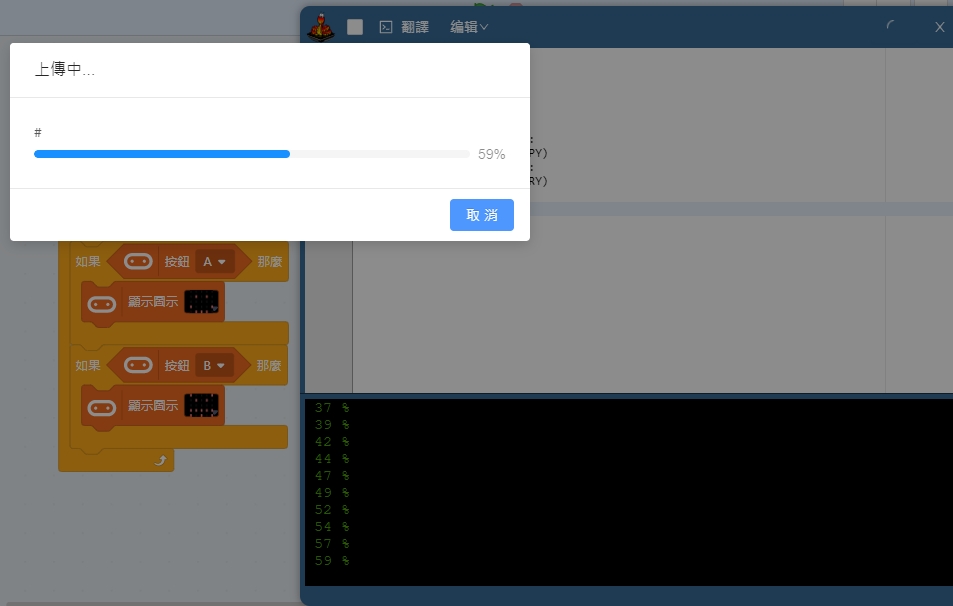 翻譯成功!此時我們就可以上載程式到Microbit了。