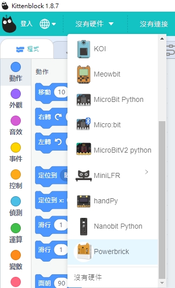 Microbit V1請選擇Powerbrick,Microbit V2可以選擇Microbit v2 python。