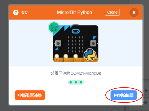 最後按下上傳,程式就會下載到Microbit上,實現離線操作。