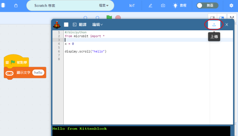 在Kittenblock平台上也可以將程式上載到MicroBit,不用永遠連着電腦使用。