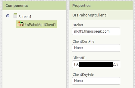 在clientID一欄裡填入ThingSpeak的client ID登入資料。