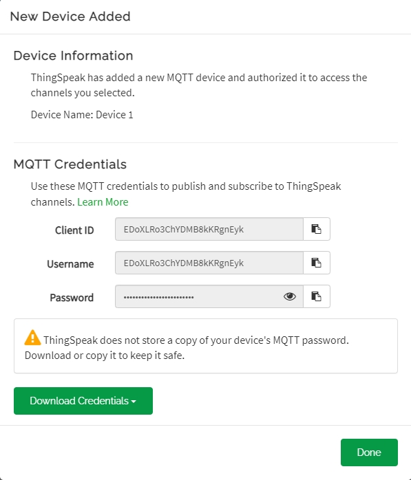 按平台的需要填入username和password。由於我們使用ThingSpeak平台,請填入username和password。