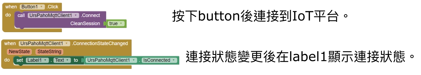 測試程式,按下按鈕後文字變為true代表成功連接到IoT平台。