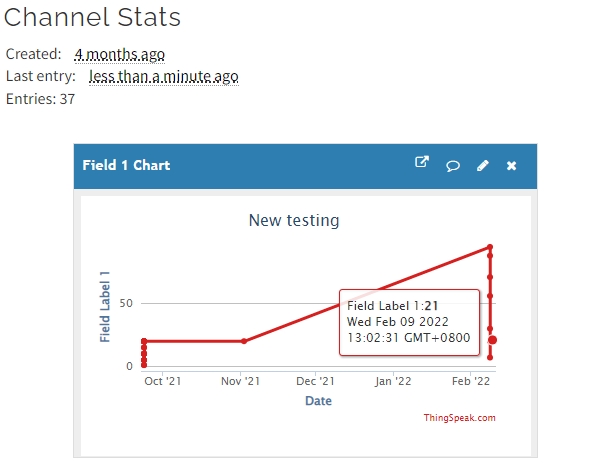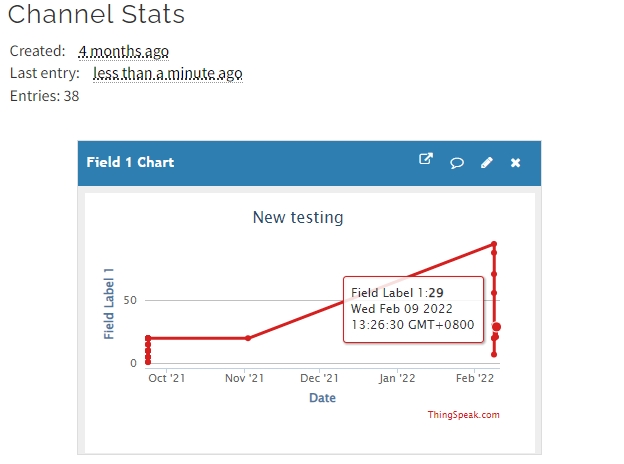 成功之後在ThingSpeak會看到剛發佈的數據。