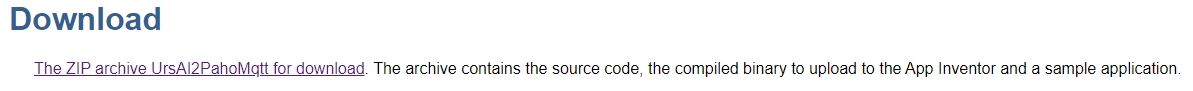 由於MIT AI2沒有內建的MQTT支援,請前往以下網站下載第三方的MQTT插件。