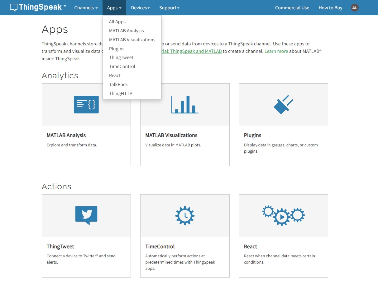 在ThingSpeak,前往Apps這個頁面。