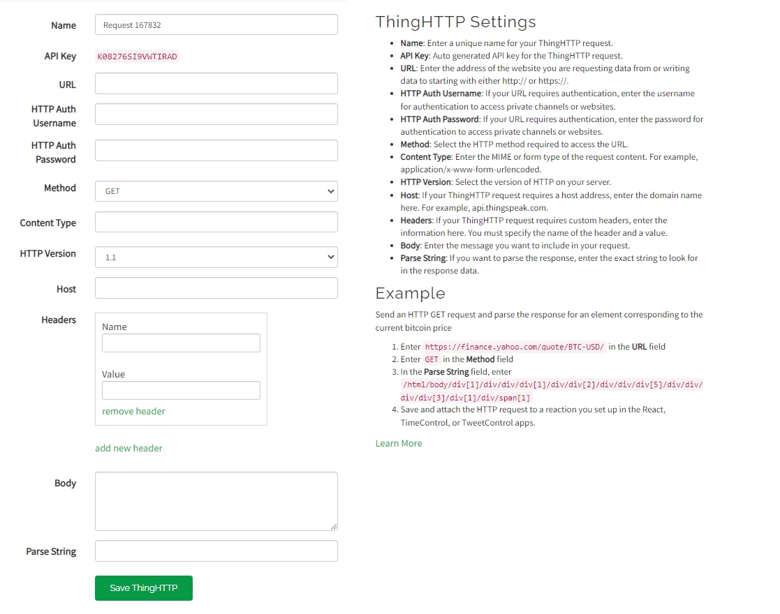 建立新的ThingHTTP。