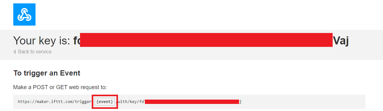 在Event的欄位填入您的IFTTT程式事件名稱。