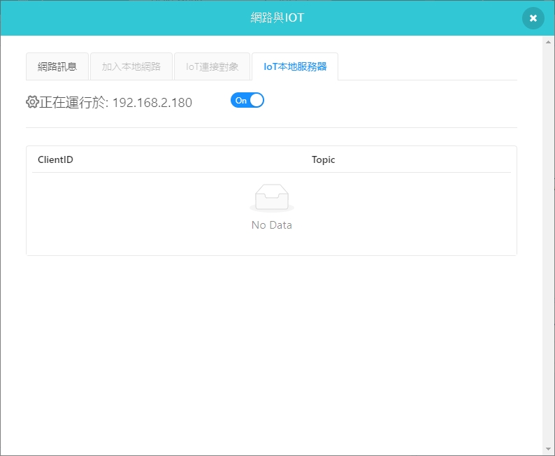 因應學校教學時可能面對的網絡問題與平台使用的困難,Kittenbot的開發人員特別在Kittenblock裏內建了一個簡單易用的本地MQTT伺服器,為大家提供一個免費可靠且易用的IoT平台。