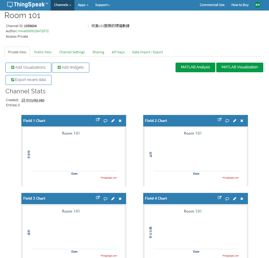 thingspeak 有MathWorks 作為後台, 其付費版含強大的高階功能, 有興趣的發燒友可一步步了解其他功能。