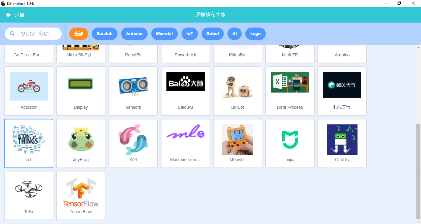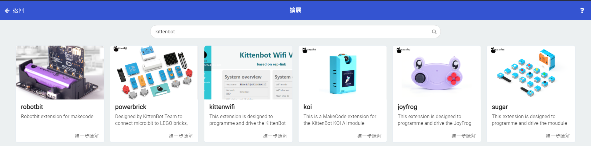 在擴展頁直接搜尋Kittenbot (Kittenbot已經過微軟認證,可以直接搜尋)