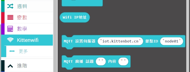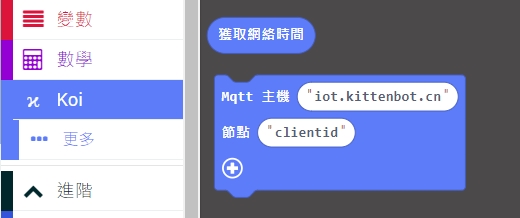 KOI的使用方法和WifiBrick類似,分別在於KOI不會自動讀取數據,需要我們運行MQTT讀取的積木才會讀取到數據。